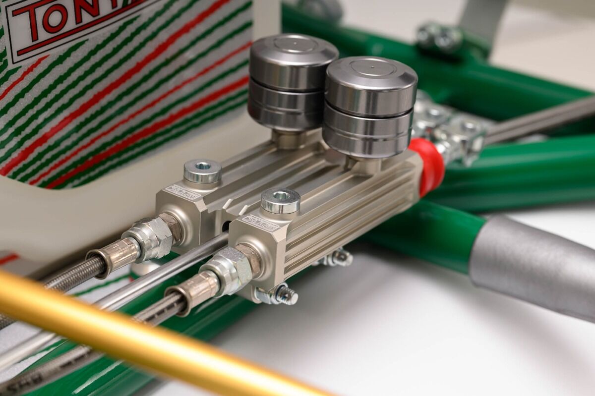 The flagship model remains the Racer which, in this new evolution, takes the name of 401 T. Since its debut, the Racer has been able, during its “sporting career,” to win more than 10 world championships and countless international title victories. Along with the body geometry (as usual, with 30 mm diameter tubes), maintained for both versions, Direct Drive classes and Shifter categories. In terms of components there are many technical innovations. Among them, the newly homologated braking systems, named BWD and BWZ ( KZ & DD2). As always, an extensive development has been done to refine every detail of Tony Kart’s flagship model, as evidenced by the introduction of the new chain tensioner, in aluminium, attached to the bearing support. The most evident new change, however, are definitely the innovative M11 fairings.